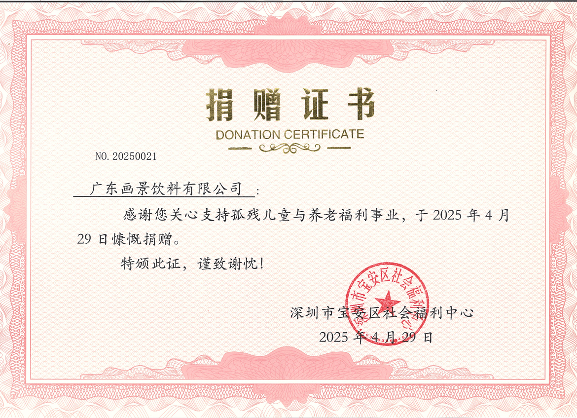 广东画景饮料有限公司成立于2007年, 是一家集科研、生产、销售为一体的大规模专业化食品饮料高新技术企业。公司建立省级企业技术中心,组建了由50多名国内食品饮料行业顶尖专家领衔的科研团队,应用国内外最先进的科学技术从事产品研发。我司最近投入2亿元建成年产30万吨天然碱矿泉水现代化生产基地,引进世界一流的全自动生产线,集过滤、吹瓶、灌装、贴标、封盖、包装一体化,采用国际领先的电子动态监控系统管理,全面推行ISO22000、HACCP国际食品安全管理体系,产品质量达到国际一流标准。