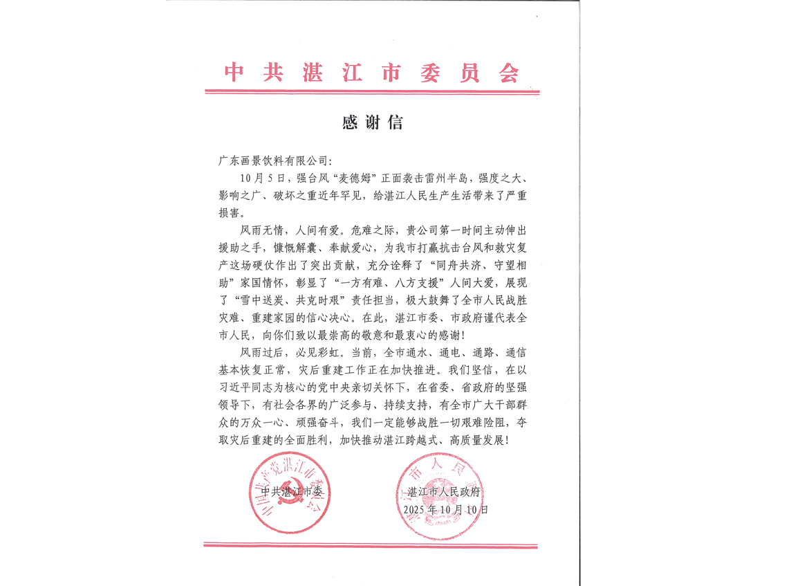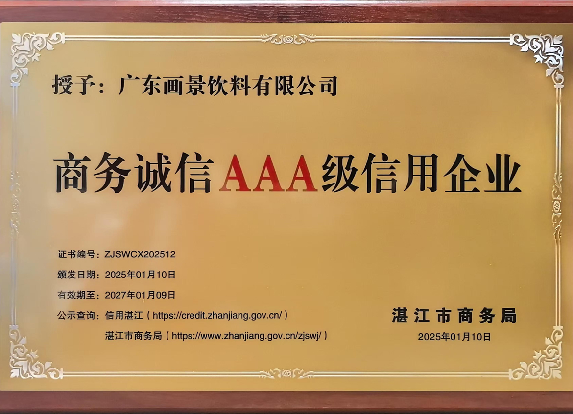 广东画景饮料有限公司成立于2007年, 是一家集科研、生产、销售为一体的大规模专业化食品饮料高新技术企业。公司建立省级企业技术中心,组建了由50多名国内食品饮料行业顶尖专家领衔的科研团队,应用国内外最先进的科学技术从事产品研发。我司最近投入2亿元建成年产30万吨天然碱矿泉水现代化生产基地,引进世界一流的全自动生产线,集过滤、吹瓶、灌装、贴标、封盖、包装一体化,采用国际领先的电子动态监控系统管理,全面推行ISO22000、HACCP国际食品安全管理体系,产品质量达到国际一流标准。